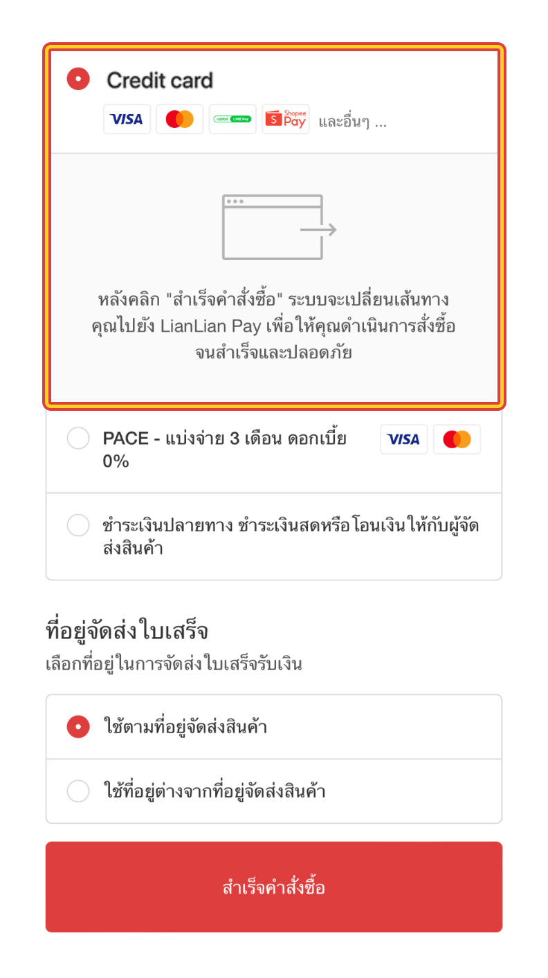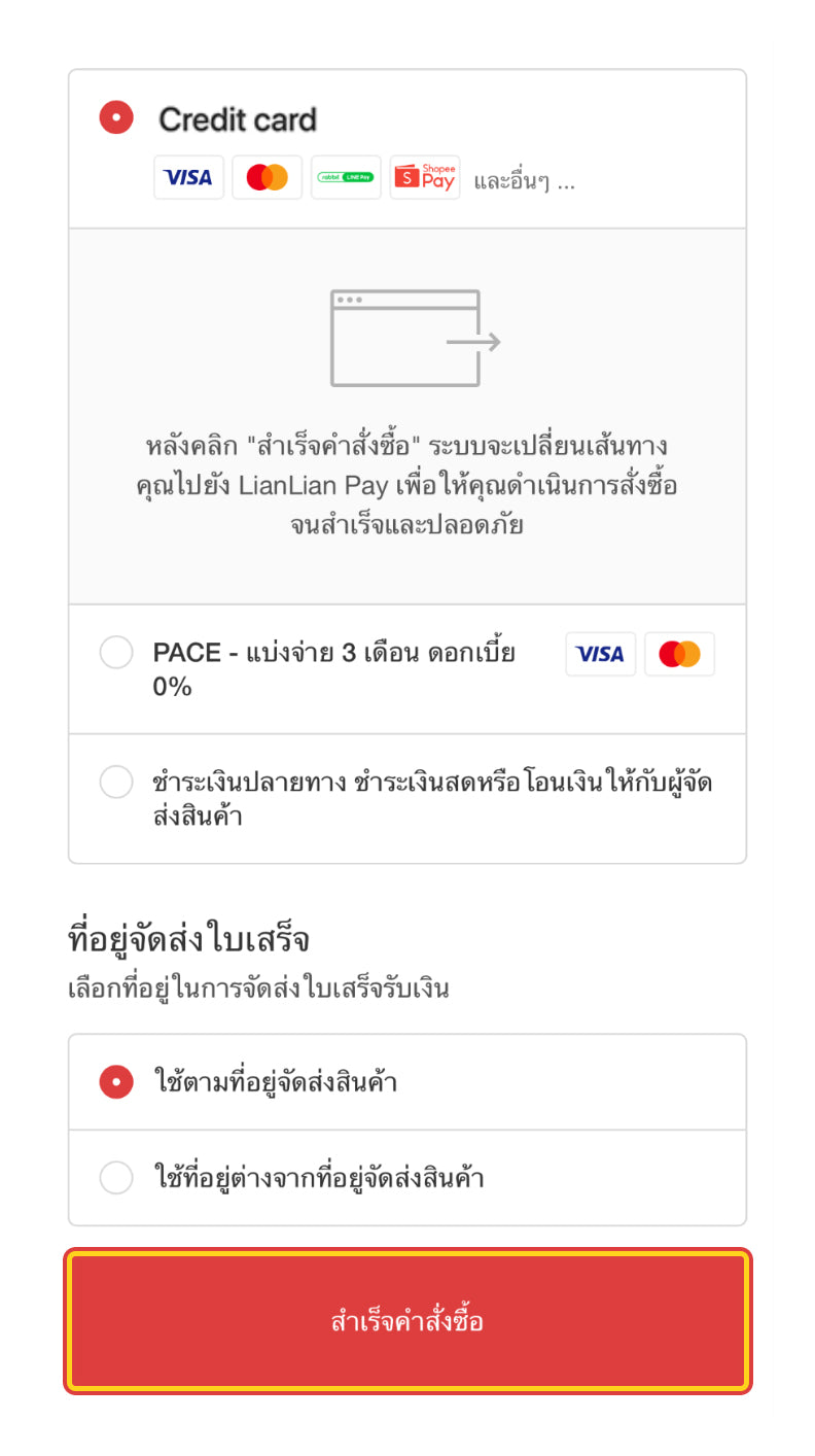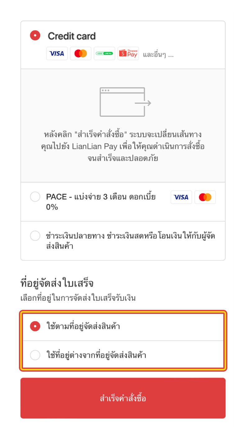 เลือกที่อยู่จัดส่งใบเสร็จ