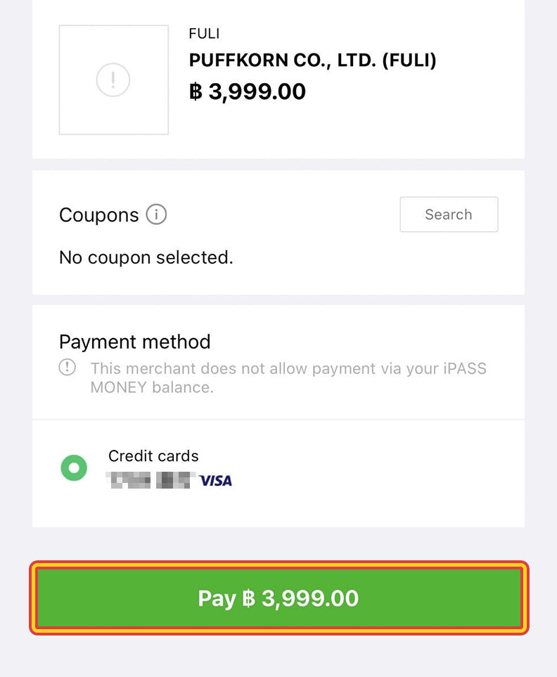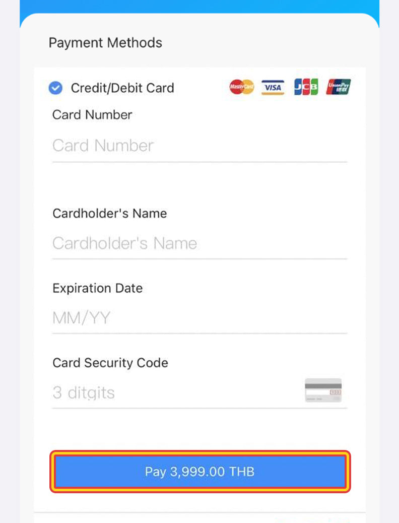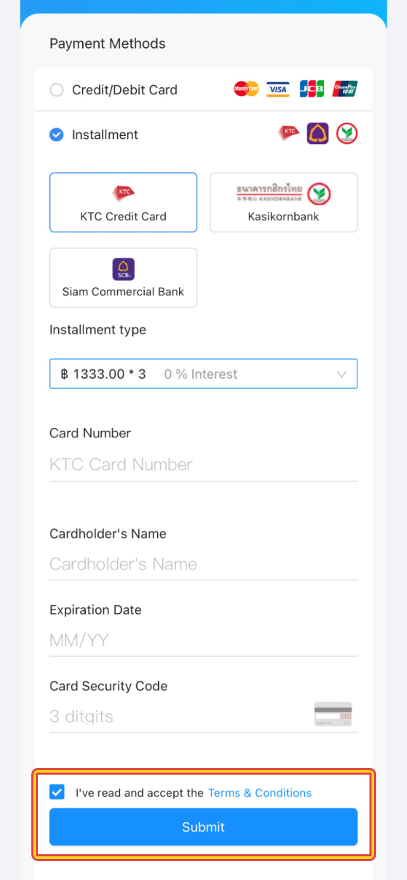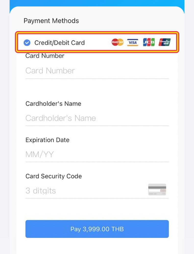 เงื่อนไข: สามารถชำระผ่านบัตรเครดิตและเดบิตของ Master Card, VISA, JCB และ Union Pay