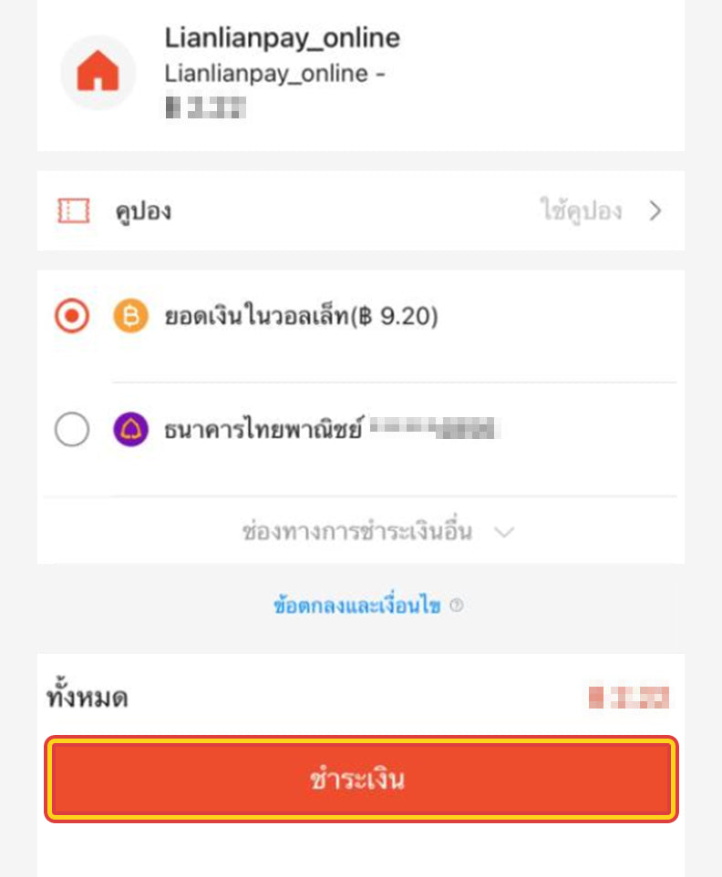 กดยอดเงินในวอลเล็ท และกดชำระเงิน